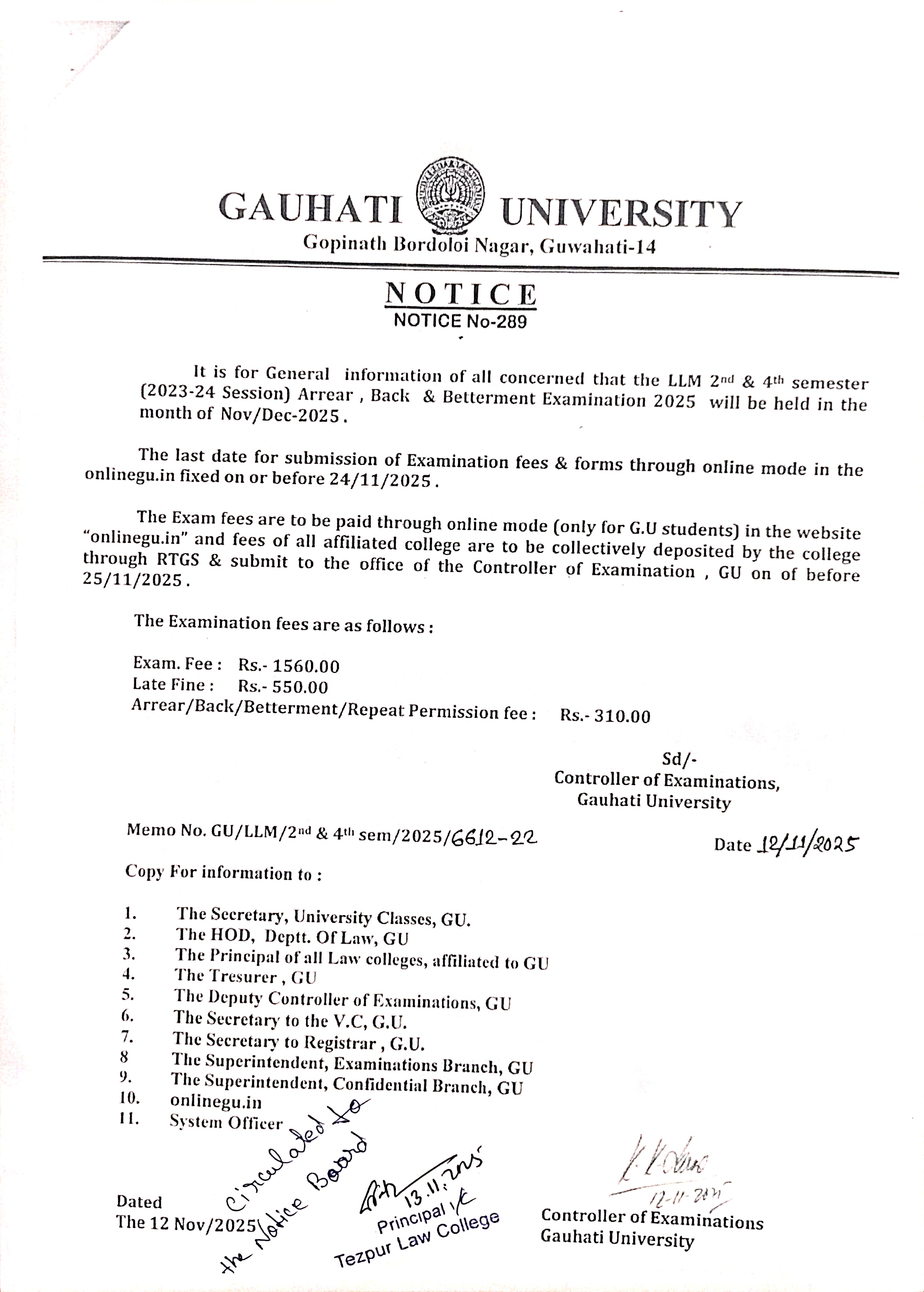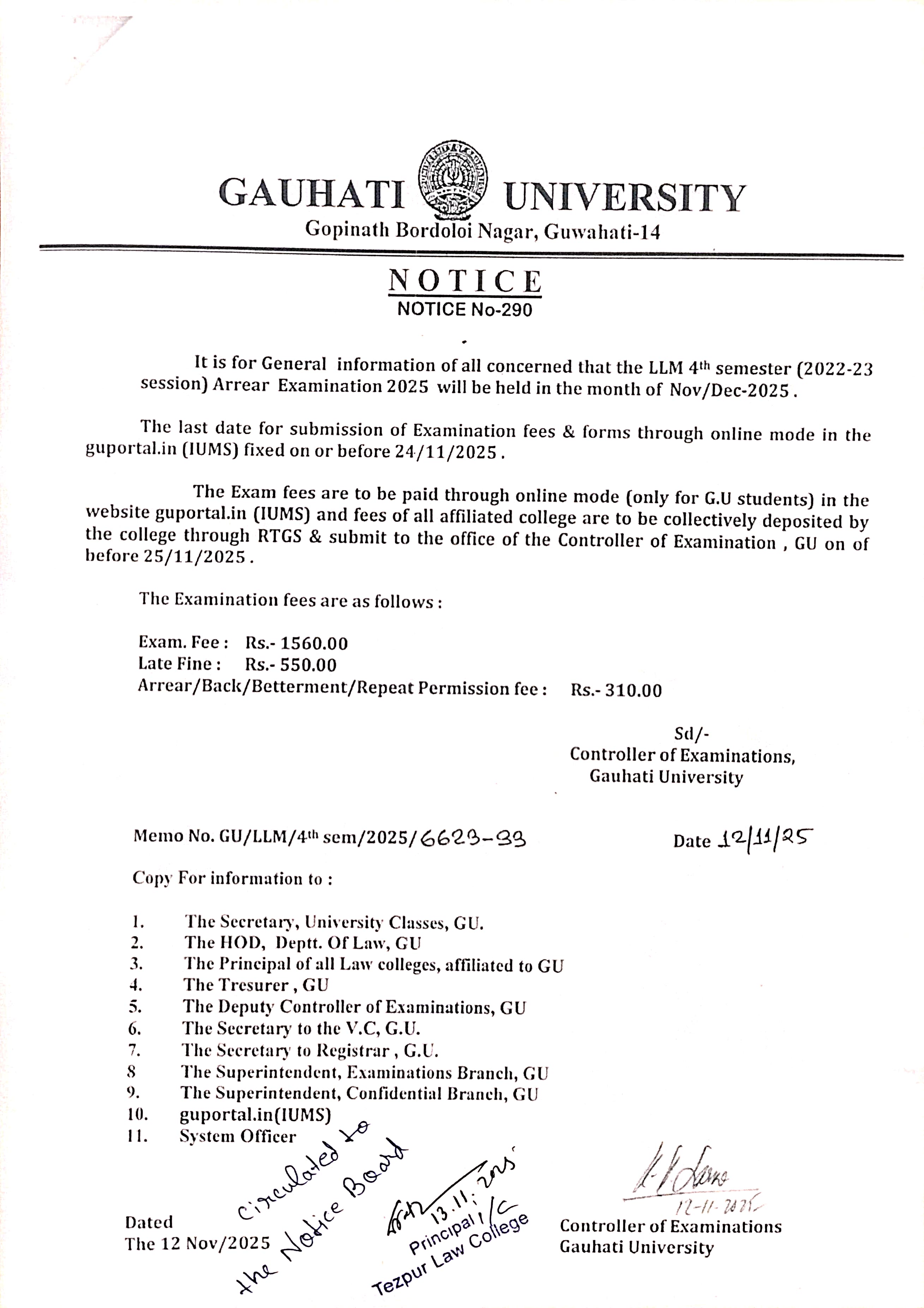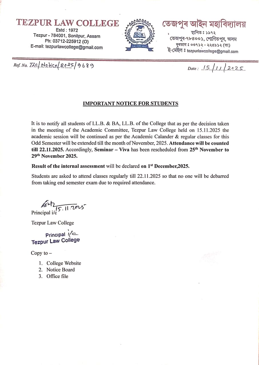 Notice for Student Grievance Redressal Committee, Tezpur Law College View 2025-03-25