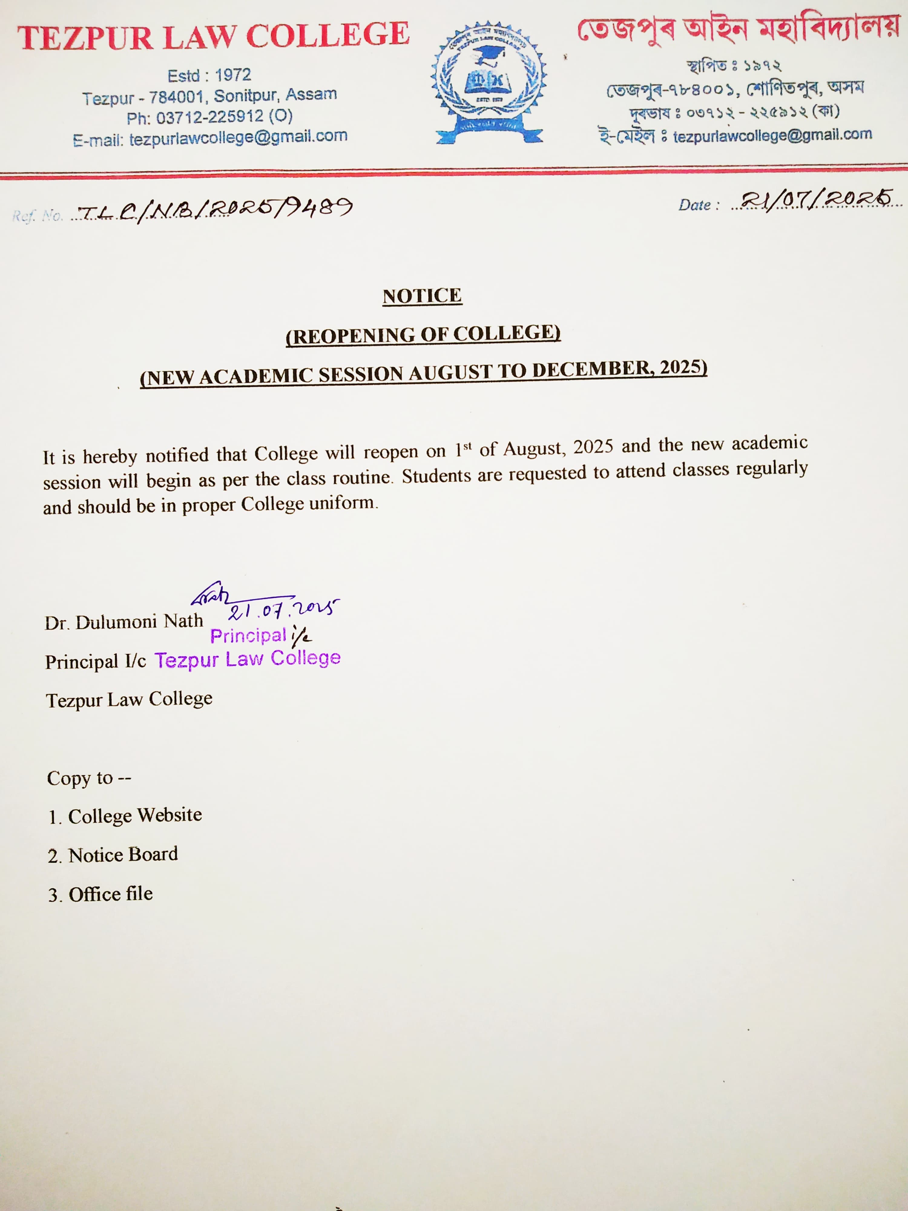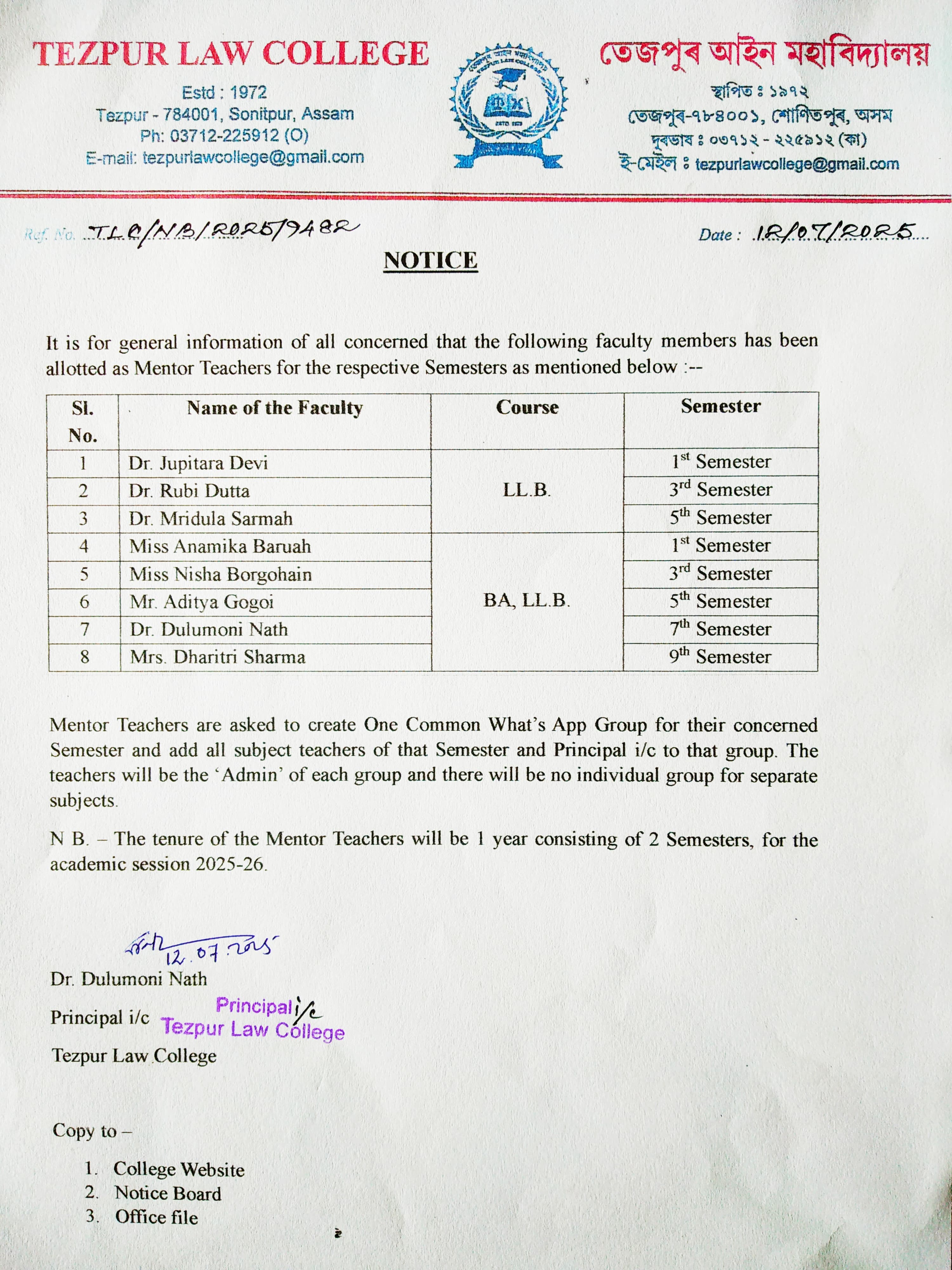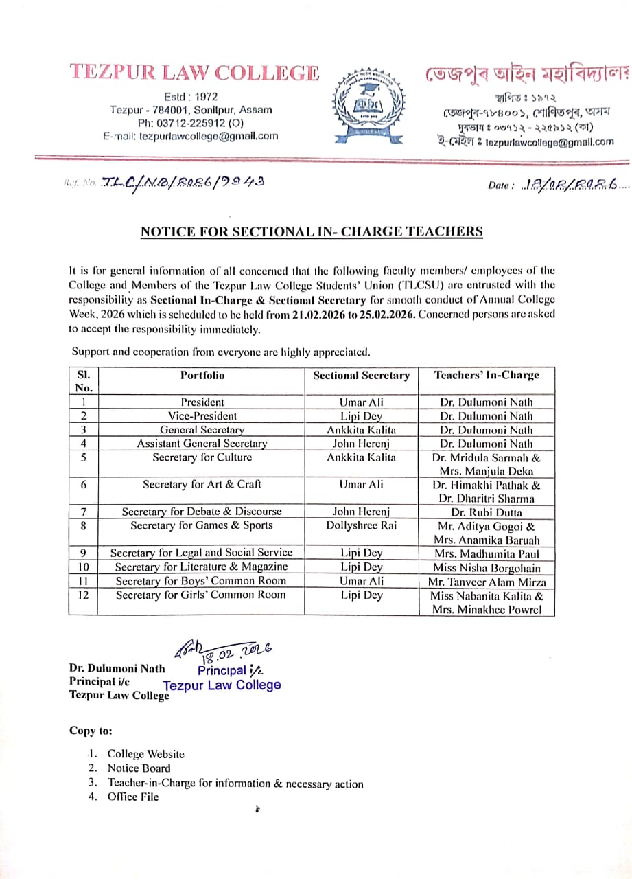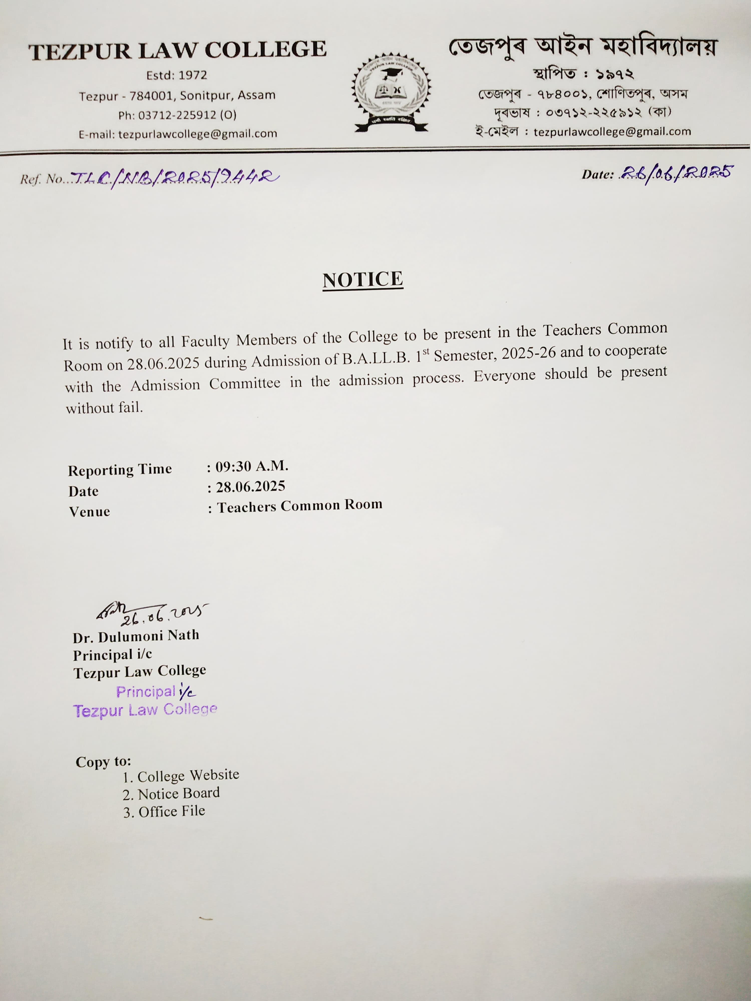 Notice for Student Grievance Redressal Committee, Tezpur Law College View 2025-03-25