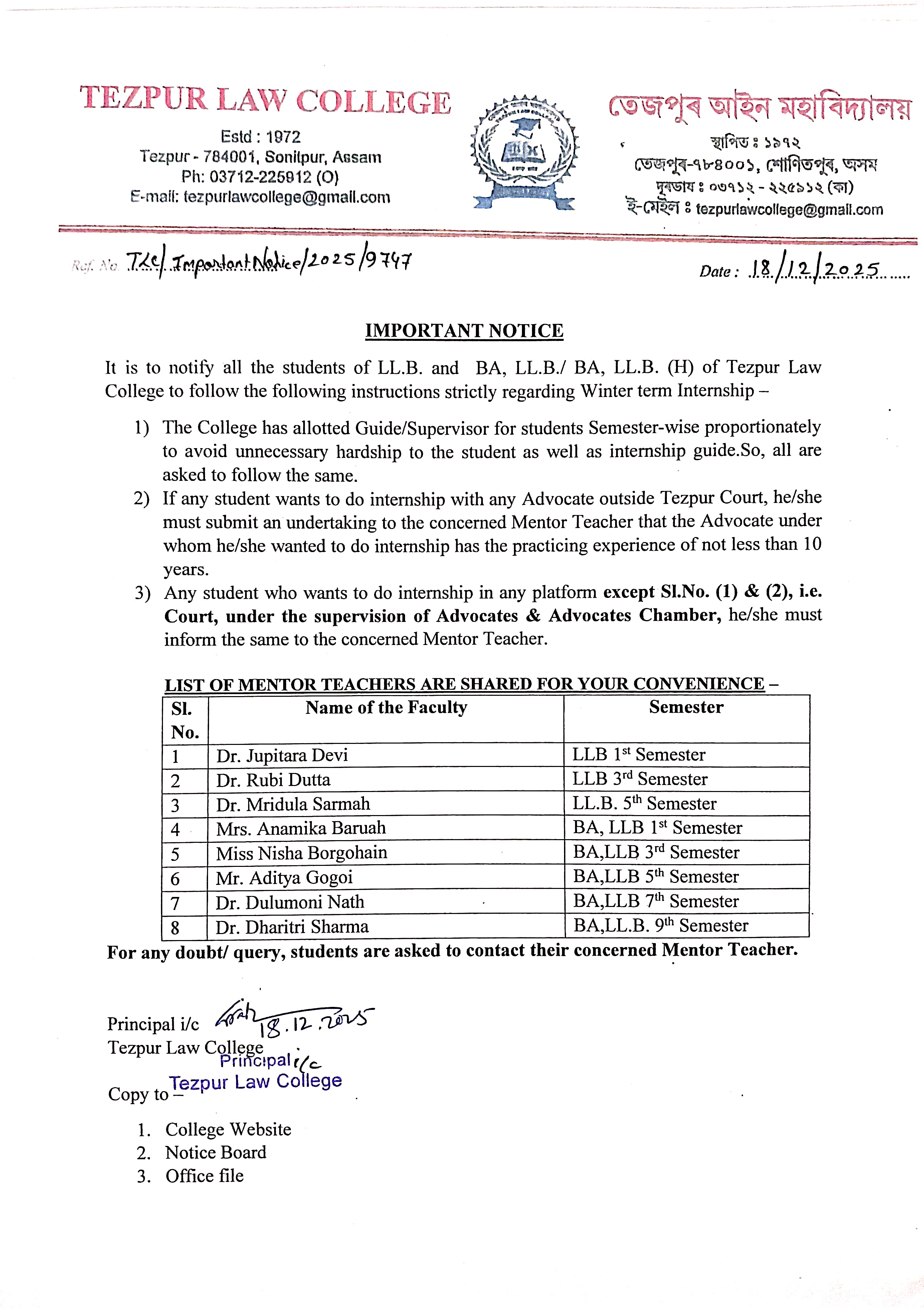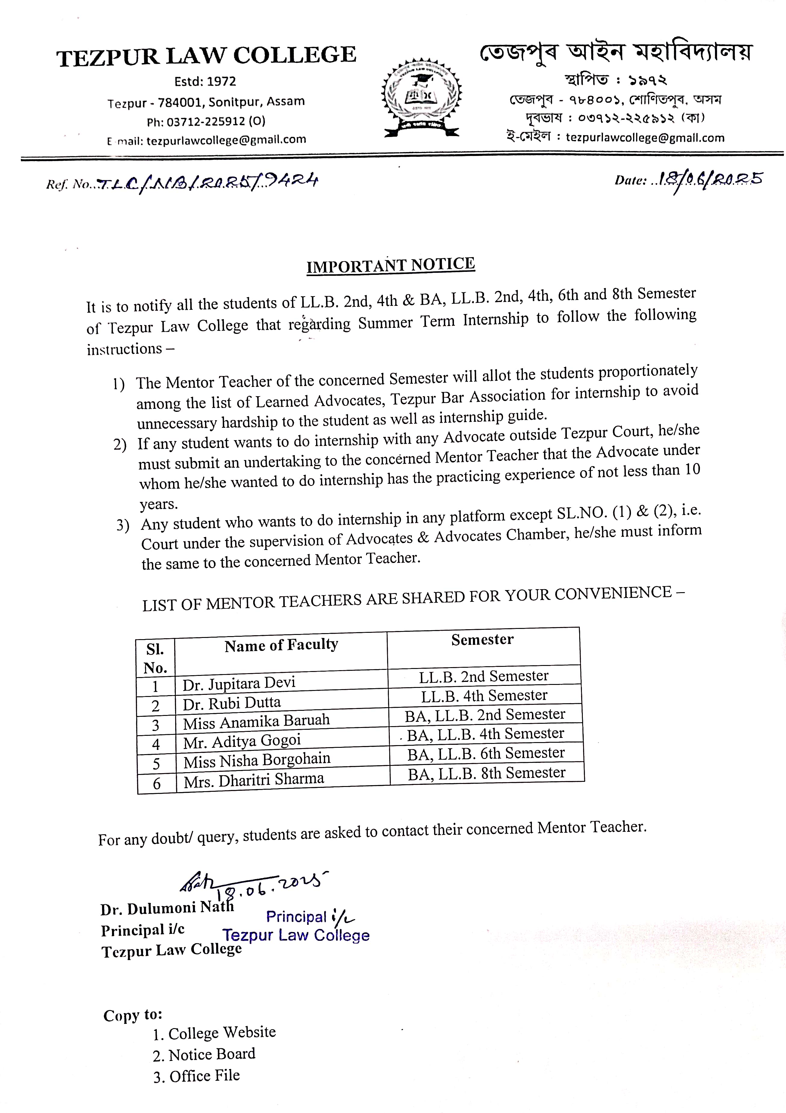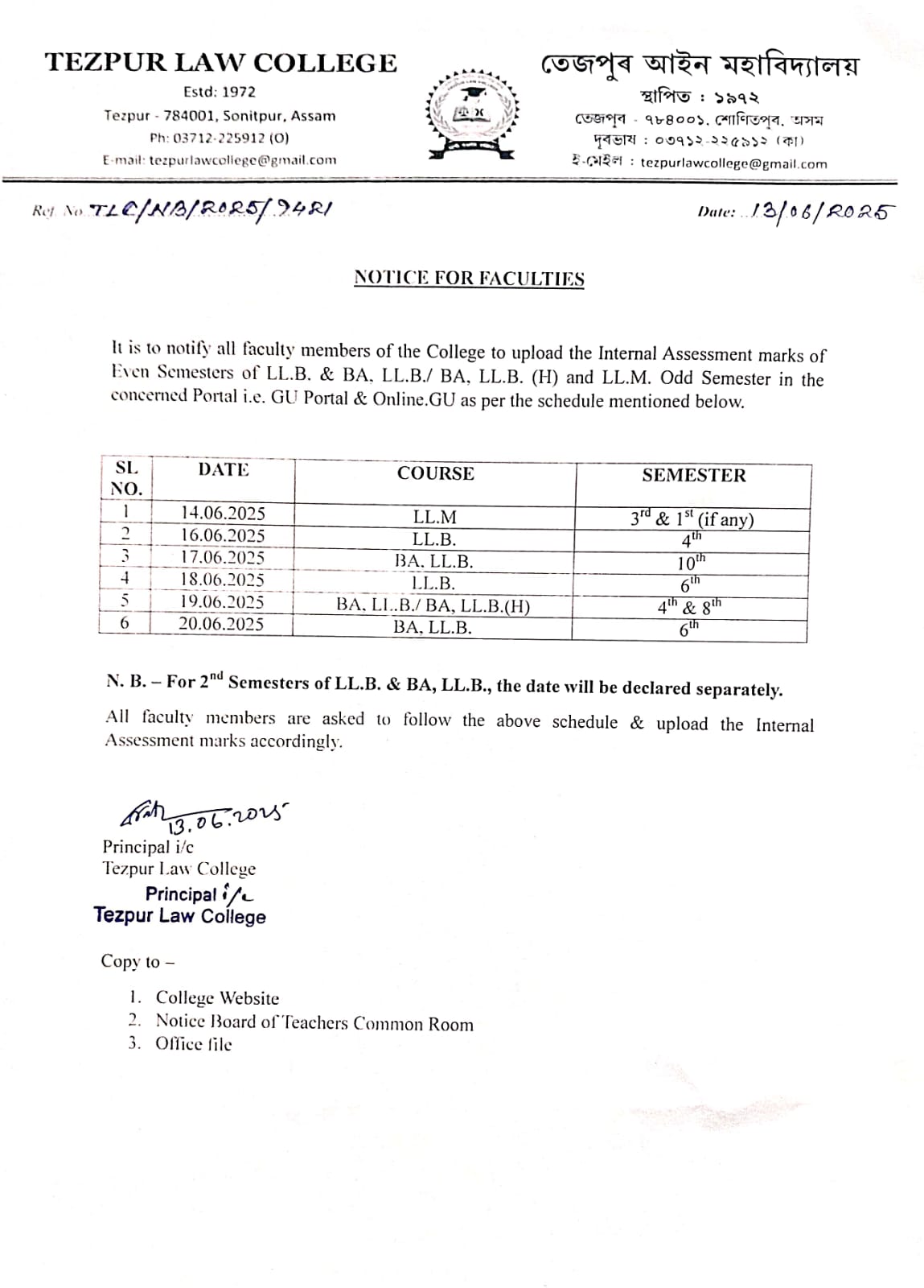 Notice for Student Grievance Redressal Committee, Tezpur Law College View 2025-03-25