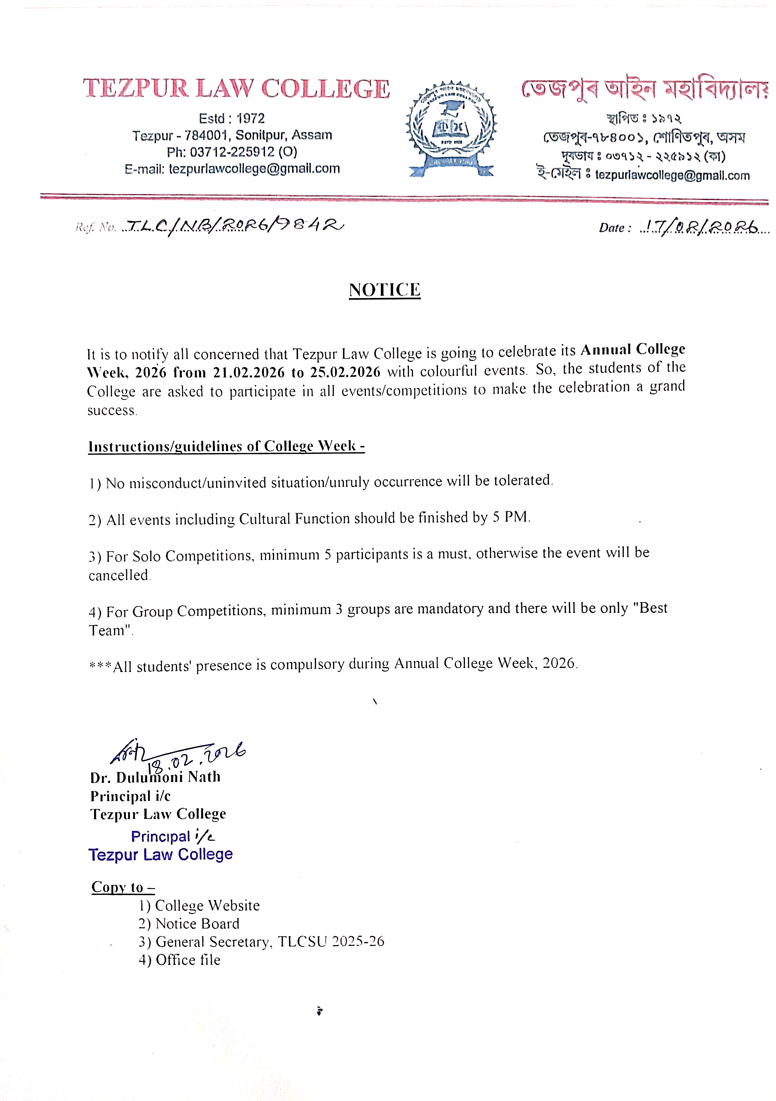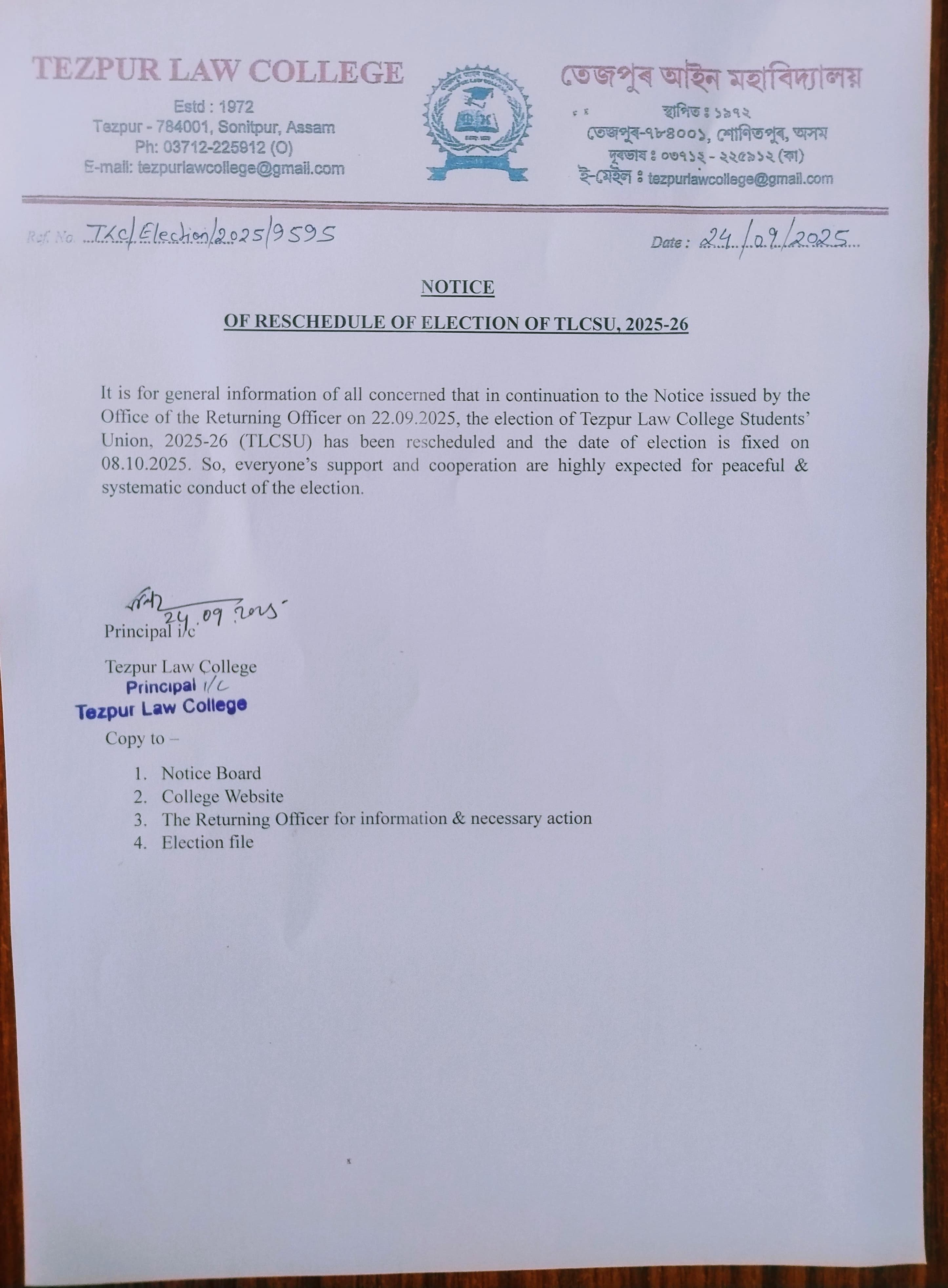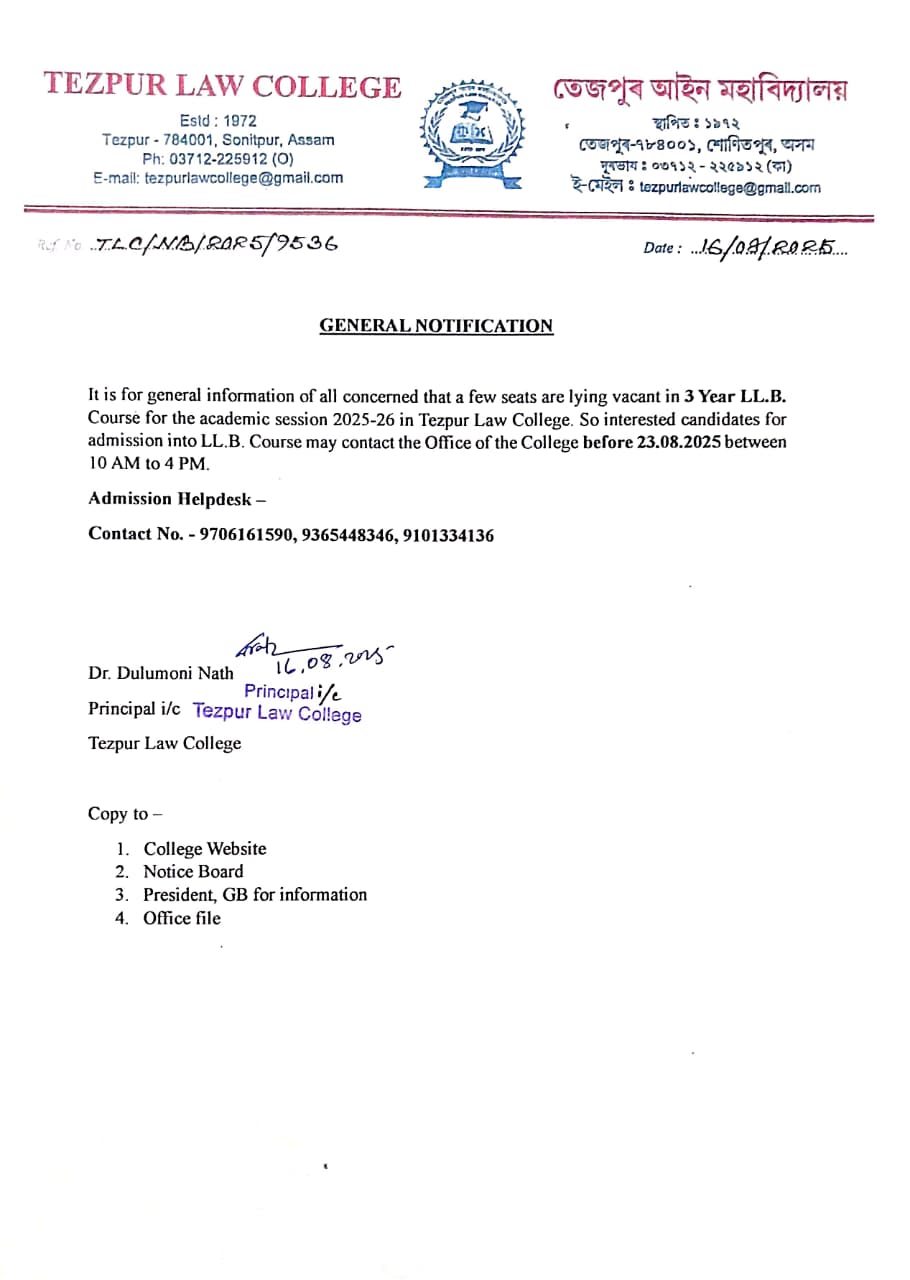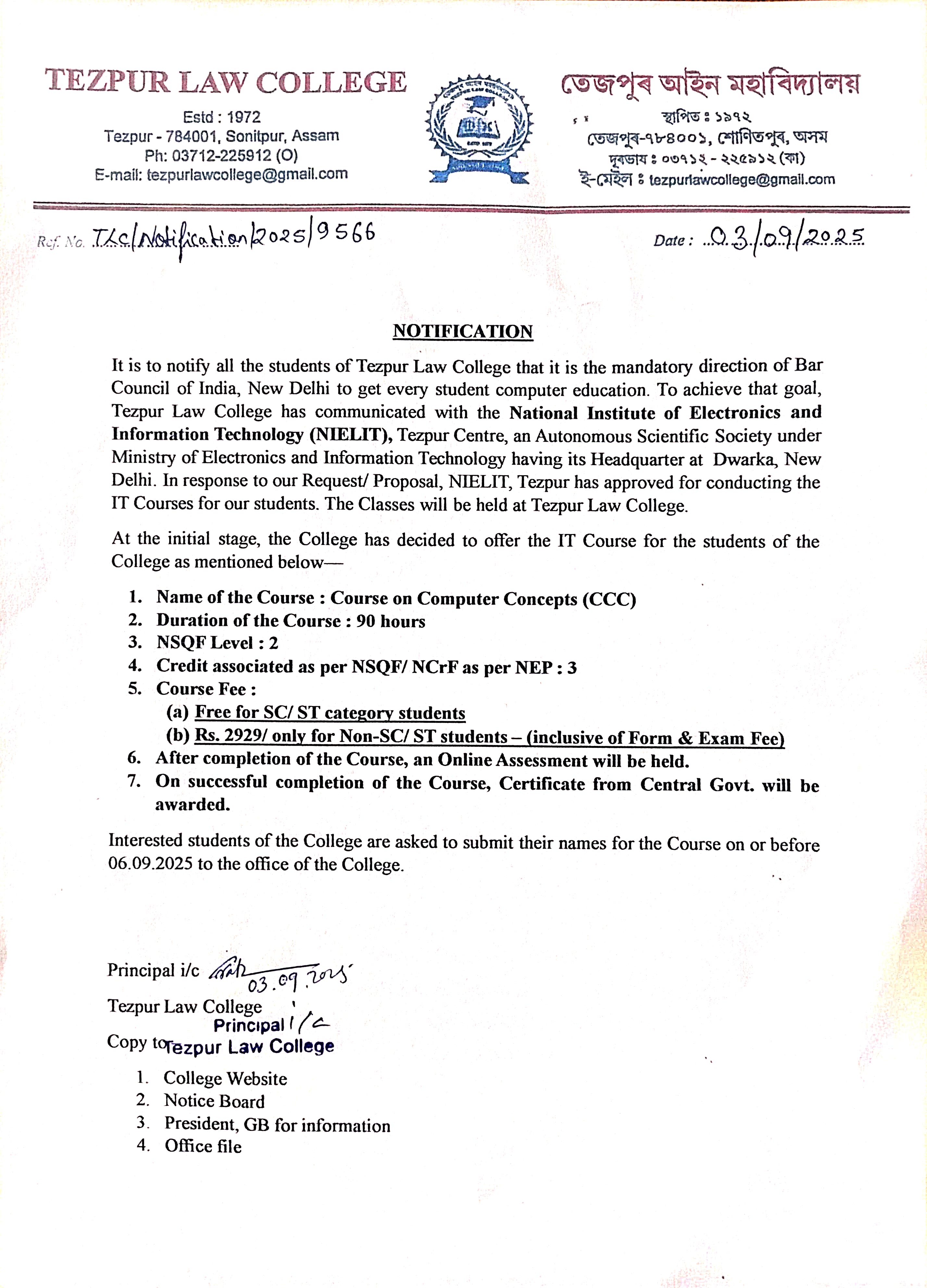 Notice for Student Grievance Redressal Committee, Tezpur Law College View 2025-03-25