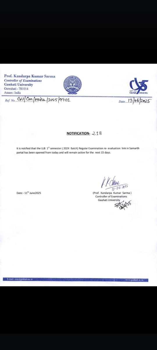 Revised Merit List for the admission for LL.B 1st Semester, 2024-25. As the Gauhati University has released New Regulation on 04.08.2024, with minor modifications, the list has been released again. View 2024-08-05