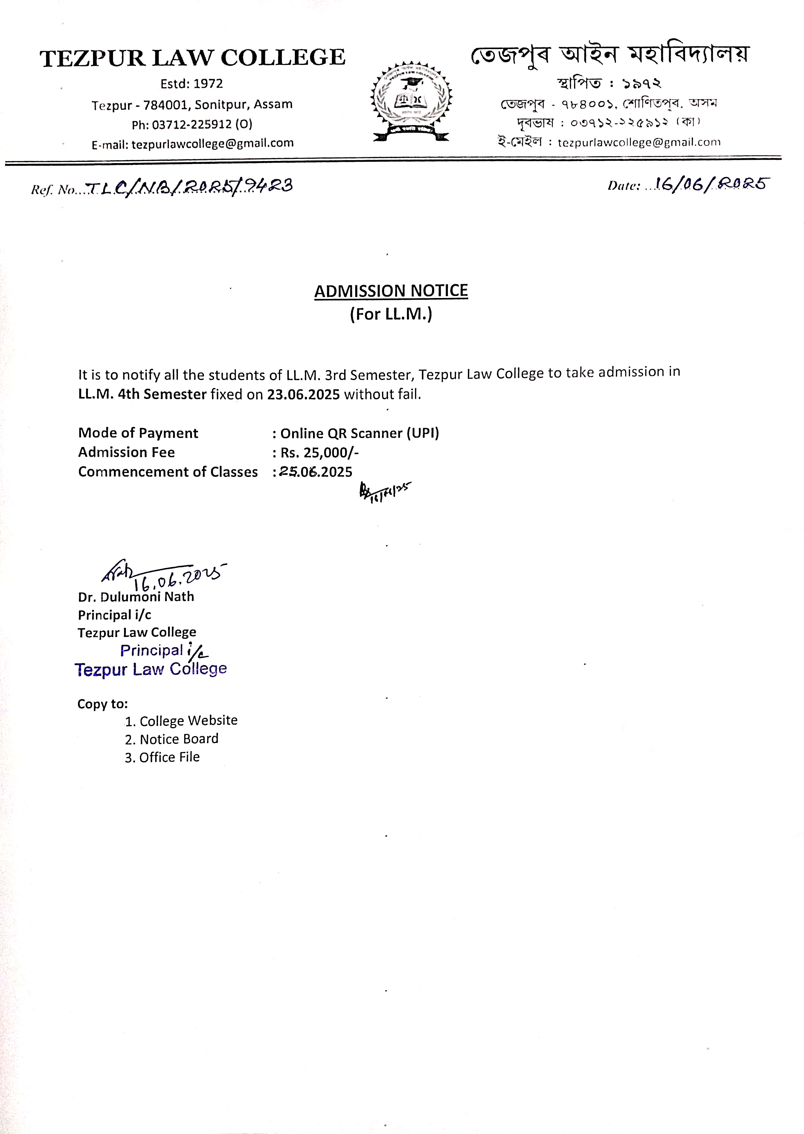 Formation of Admission Committee, Tezpur Law College for BA,LL.B (H), Academic Session 2024-25. View 2024-05-11
