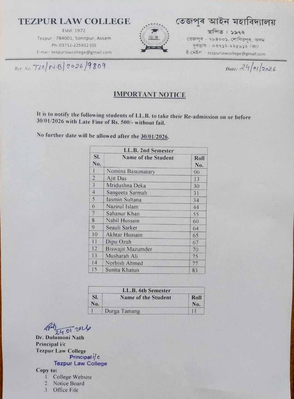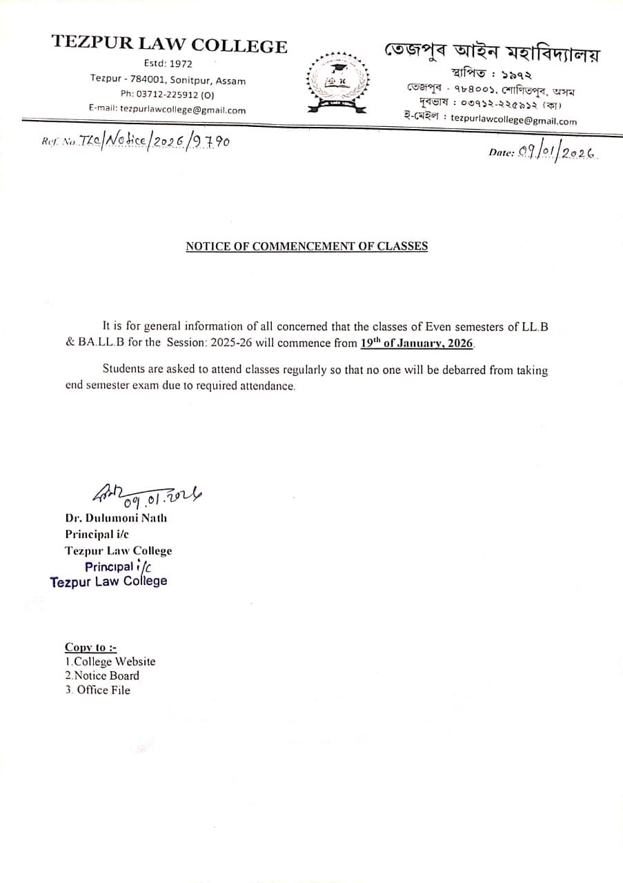 Notice for Student Grievance Redressal Committee, Tezpur Law College View 2025-03-25
